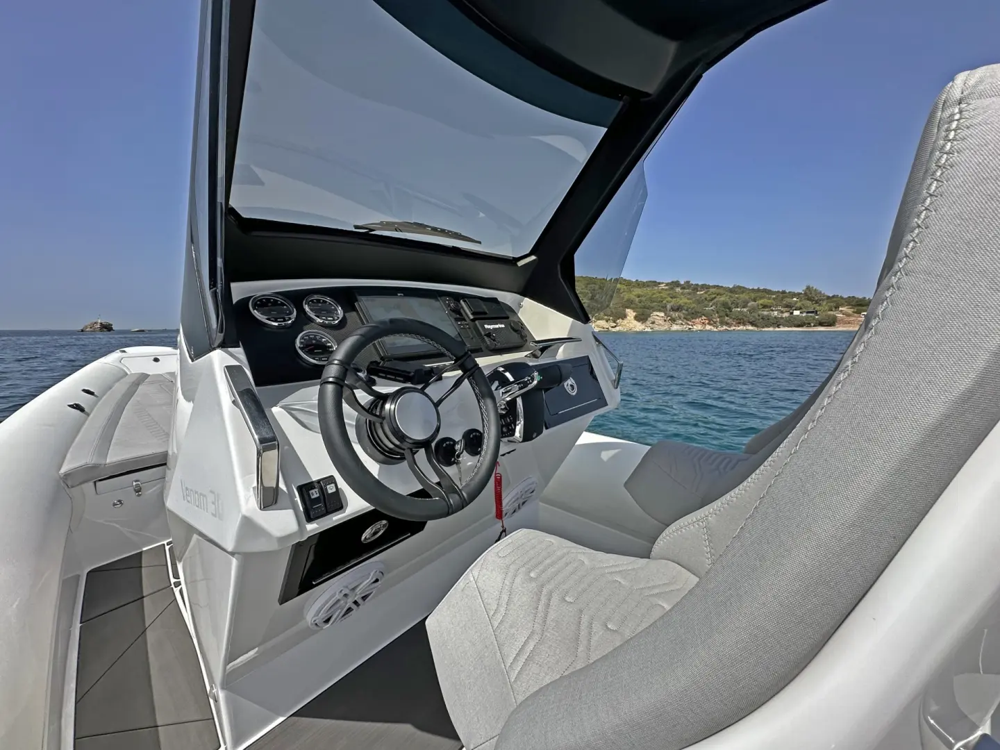 RIBCO Venom 30, markanın 9 metre segmentindeki yeni nesil performans RIB modelidir. İki kademeli yeni gövde yapısı sayesinde yüksek verimlilik ve etkileyici hız sunarken, konfor ve denizcilik kabiliyetinden ödün vermez. Segmentine göre oldukça ferah tasarlanan güvertesi; geniş baş güneşlenme alanı, WC, yüzer tasarımlı karbon fiber T-Top ve kıç bölümde buzluk entegreli arkaya dönük oturma alanıyla hem sportif kullanım hem de keyif odaklı deniz yaşantısı için güçlü bir denge sunar.